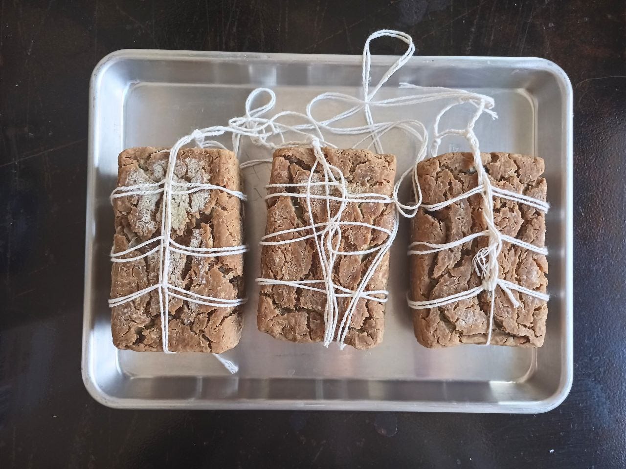 Once the blocks are dry enough on the outside to not fall apart easily while handling, use clean hands to tie them with cotton string (or rice straw, if you can find long enough pieces to tie them together to form a rope).