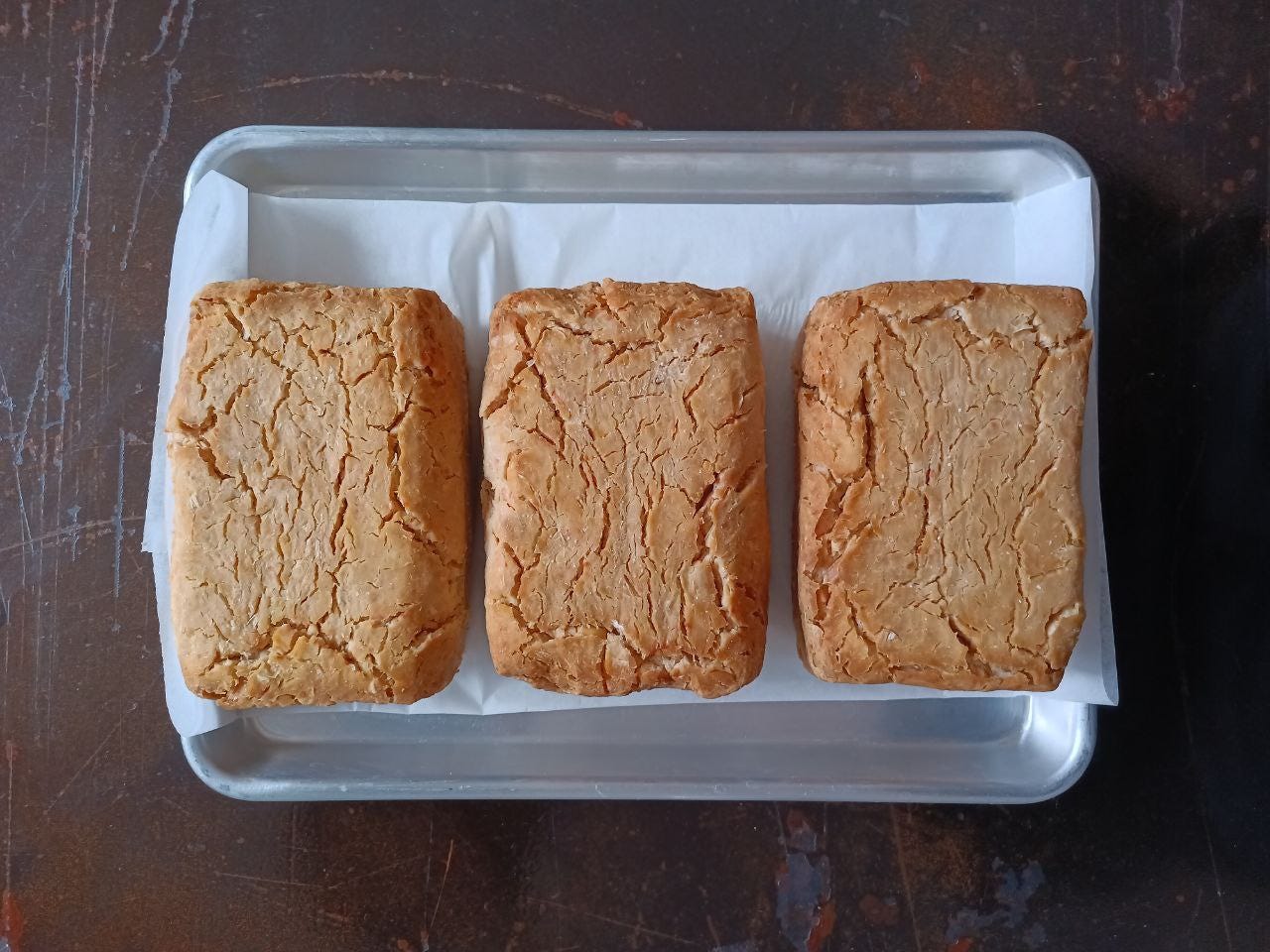 Dry out the meju blocks over the course of 3-4 days by placing them on a parchment-lined tray on top of a heated blanket or seedling mat. No matter the heat source, you want them to dry out slowly, otherwise, very large cracks will form on the surface of the blocks and compromise their structural integrity. Rotate the blocks once or twice a day to dry out from a different side. If you see very large cracks forming on the blocks, place a clean towel or blanket between the tray and the heating source to insulate them further if the heat is too direct.